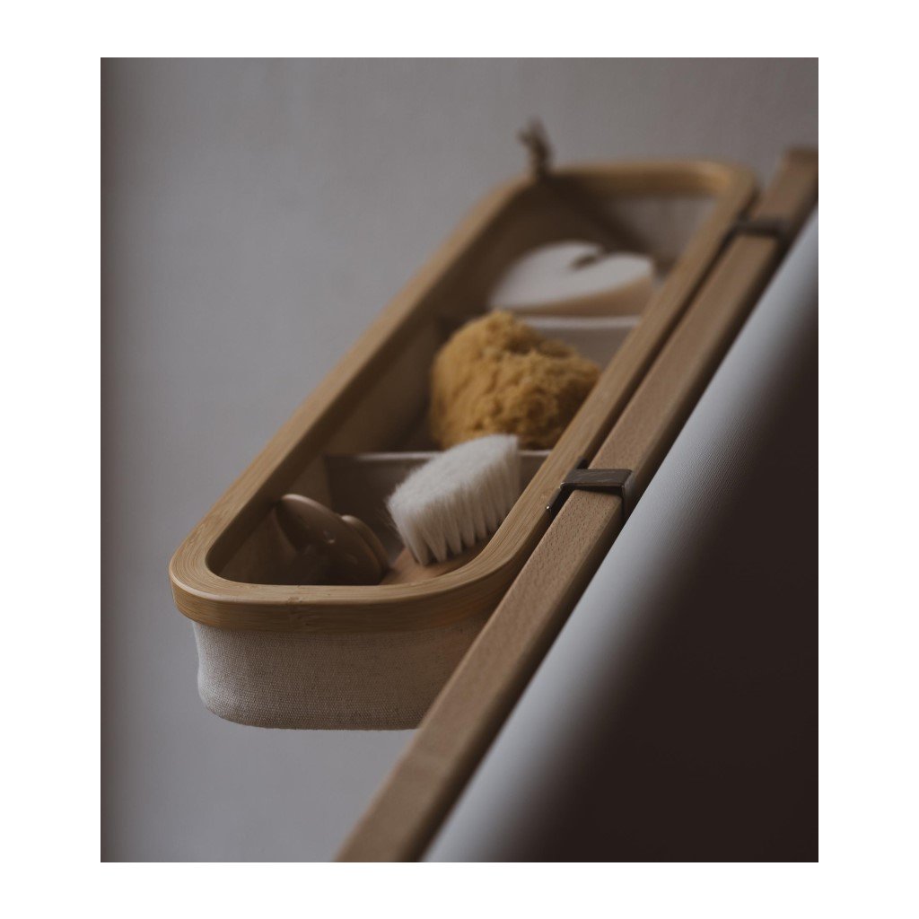 Vďaka jednoduchému systému zavesenia môžete košík umiestniť presne tam, kde sa práve nachádzate – či už prebaľujete alebo kúpete bábätko. Oddelené priehradky zabezpečia, že drobné tuby a fľaštičky ostanú prehľadne usporiadané a nebudú sa v košíku hýbať.