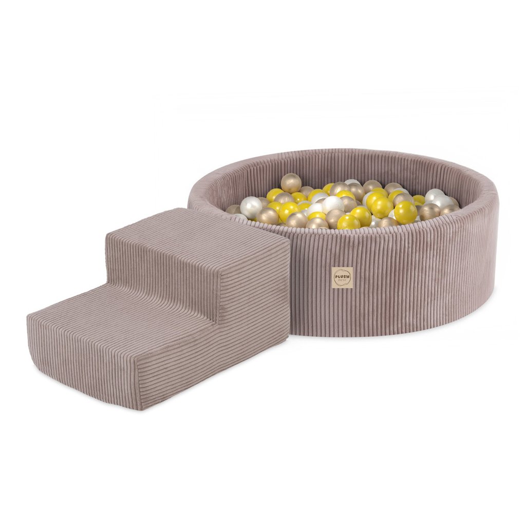 Suchý bazén so schodíkmi menčestrový + 200 loptičiek béžový +200 guličiek
